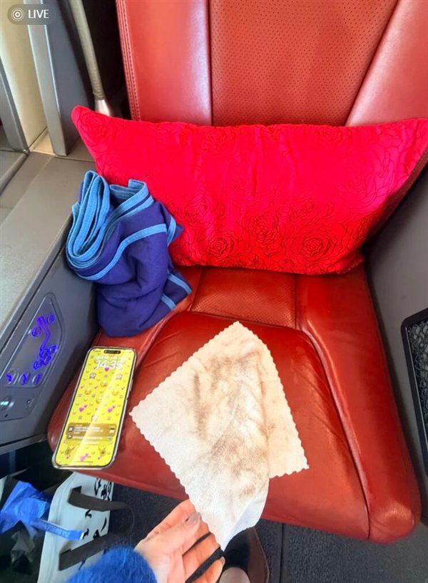 12月8日消息,据媒体报道,有网友在社交平台发帖吐槽高铁商务座卫生问题,用湿纸巾一擦就留下明显污渍。