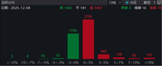 <p> 今日A股震荡走高,上证指数上涨0.54%,报收3924.08点;深证成指上涨1.39%,报收13329.99点。两市上涨个股超3400家,共计成交2.05万亿元,较上一交易日明显放量。板块方面通信、非银金融领涨,煤炭行业跌幅居前。</p>