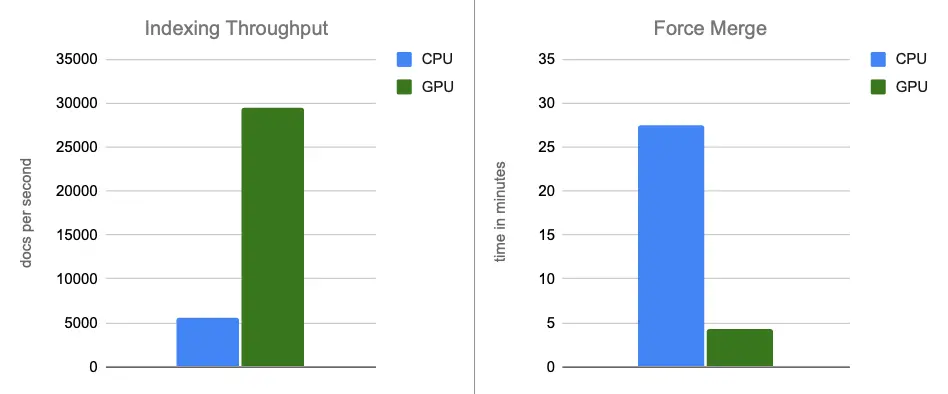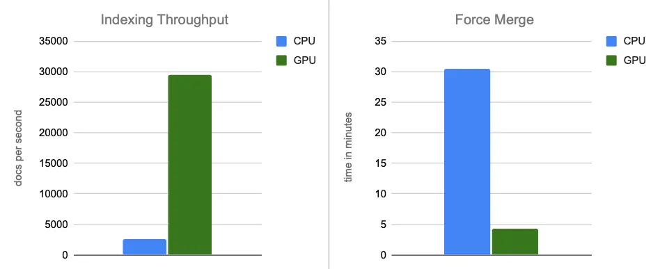 - 强制合并:在索引完成后,GPU 继续加速段合并,使强制合并阶段加速约 7 倍。