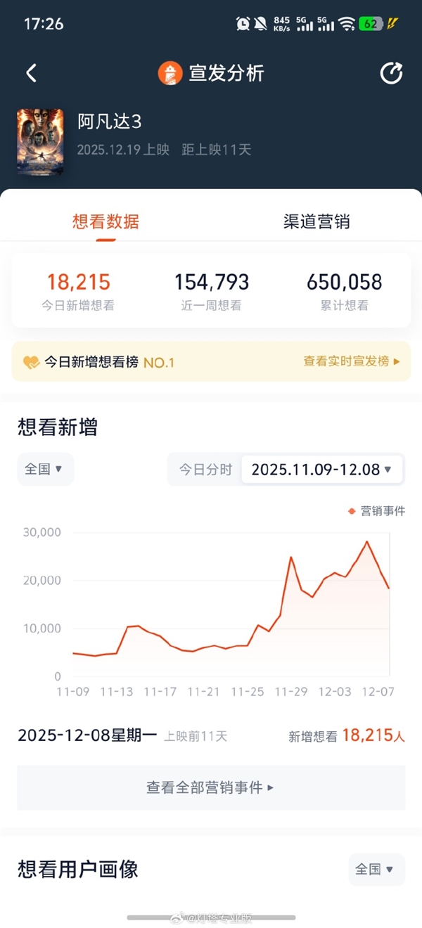 《阿凡达3》还有10天上映 想看人数已经突破65万