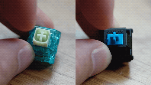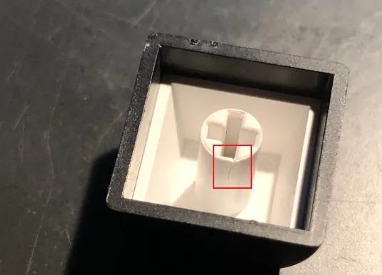 再比如,后来某轴厂生产过一批轴体,由于模具有问题,轴体上的十字轴心比较粗,会把键帽的菊花口撑裂开,这样一来,键帽基本上就等于报废。