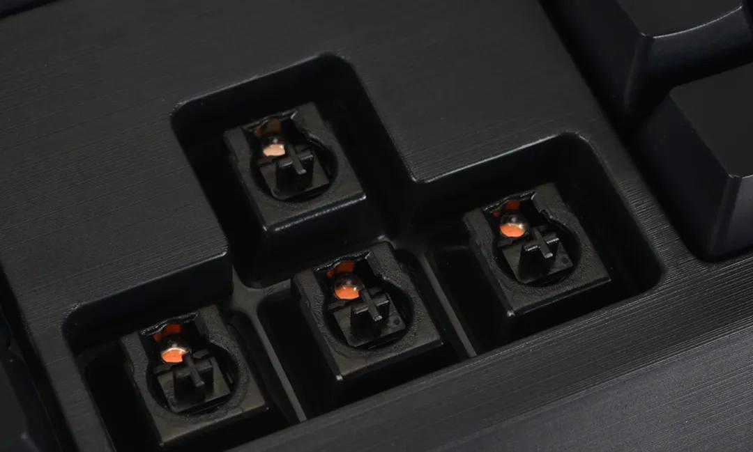 沉淀10年后,发布了MX轴。比于整个集成的设计,MX轴是一颗一颗独立的,有一颗坏掉了,可以脱焊再焊一颗新的上去。更关键的是,它采用了Cherry独有的Gold Crosspoint(黄金触点技术),在触发精度跟使用寿命上达到了新的高度。