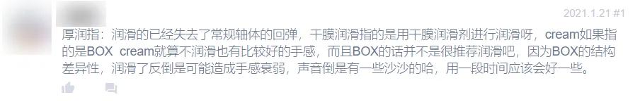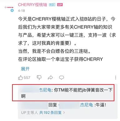 2020年前后,关于弹簧音的反馈甚至上了Cherry官号评论区的热评。