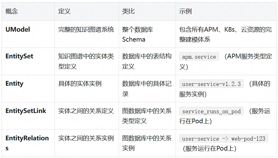 在 EntityStore 的体系中,节点的标签格式为 domain@entity_type,例如 apm@apm.service 表示域为 apm、实体类型为 apm.service 的节点。这种标签设计不仅清晰地表示了节点的归属和类型,还支持基于域的快速过滤和查询。节点的属性包括了系统内置的属性(如 __entity_id____domain____entity_type__)以及用户在写入时自定义的属性(如 servicename、instanceid 等)。边的类型同样可以用字符串表示,比如 callsruns_oncontains 等,每条边也会携带相应的属性信息。