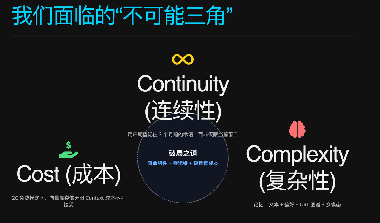 沉浸式翻译团队在构建记忆系统时,面临着三个相互制约的核心难题: