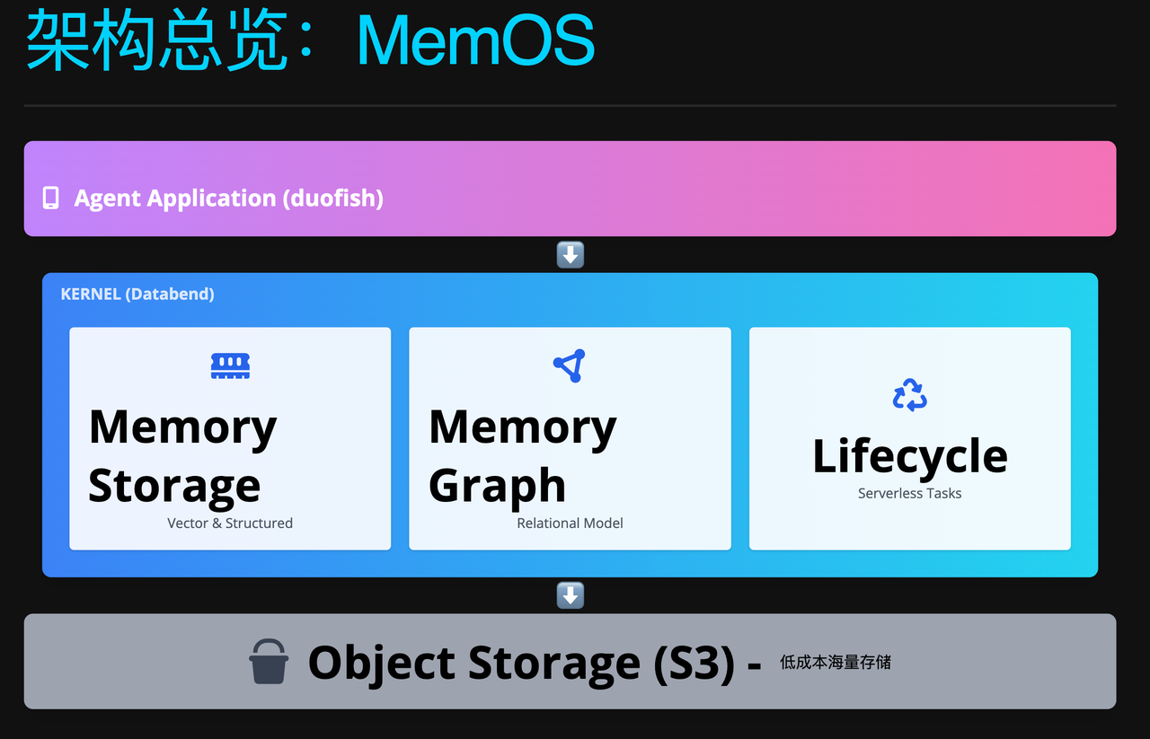 面对上述挑战,沉浸式翻译团队选择了 Databend 作为其核心记忆存储与计算引擎。Databend 独特的架构优势完美契合了 MemOS 对成本、性能和复杂度的严苛要求: