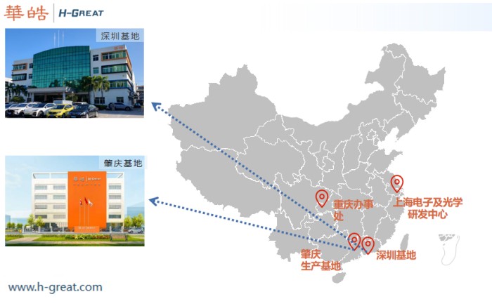 从深圳基地的技术启航,到安徽基地的产能落地,再到上海电子及光学研发中心的创新引擎,以及重庆办事处的市场开拓前沿,华皓伟业的全国布局逐步完善。如今,肇庆生产基地的建设更是将这一宏图伟略推向崭新高点。肇庆,作为粤港澳大湾区的璀璨明珠,智能网联汽车产业集群正蓬勃发展,头部车企与配套企业星罗棋布,与华皓伟业车载 LED 核心业务高度契合。新厂房拔地而起后,将与核心客户实现“贴身紧握”,供应链响应周期大幅缩短,更是深度融入当地产业生态,从单一器件供应“华丽转身”为场景化解决方案的全能选手。