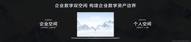 同时为了帮助企业更好地实现更复杂的数字资管理需求,鸿蒙电脑企业版不但包含鸿蒙电脑专业版的全部能力,还带来“企业数字双空间”的能力。为企业数字资产与员工个人数据提供各自的独立空间,实现企业空间与个人空间的网络隔离、数据隔离。员工可以将重要的企业数据存储在企业空间内,常用的个人数据存放在个人空间,企业空间可独立管控USB、蓝牙、打印等资源,防止跨空间数据泄露,也可以对个人空间进行重新自定义和安全管控部署,既保证了企业数字资产的边界清晰和安全,也兼顾了企业对外沟通、效率至上的需求。