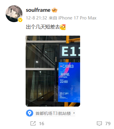 而对于《影之刃零》现身TGA一事,市场已有相当预期。上周该游戏制作人梁其伟发布微博,配图显示目的地为洛杉矶,并配文“出个几天的短差去”,实则提前预告前往TGA现场。