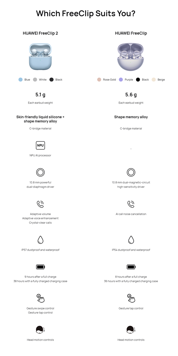 产品设计上,华为FreeClip 2采用全新亲肤液态材质,配合高性能记忆金属,柔软度提升25%,全新云感C形桥更柔软贴耳。