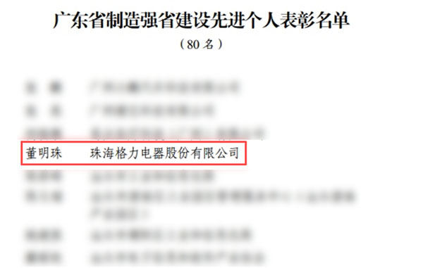 近日,广东省人力资源社会保障厅、省工业和信息化厅联合发布表彰决定,格力电器董事长董明珠获评2025 “广东省制造强省建设先进个人” 称号。这份荣誉,既是对董明珠在制造强省建设中突出贡献的肯定,也是对格力电器深耕实业、助力现代化产业建设的再度认可。