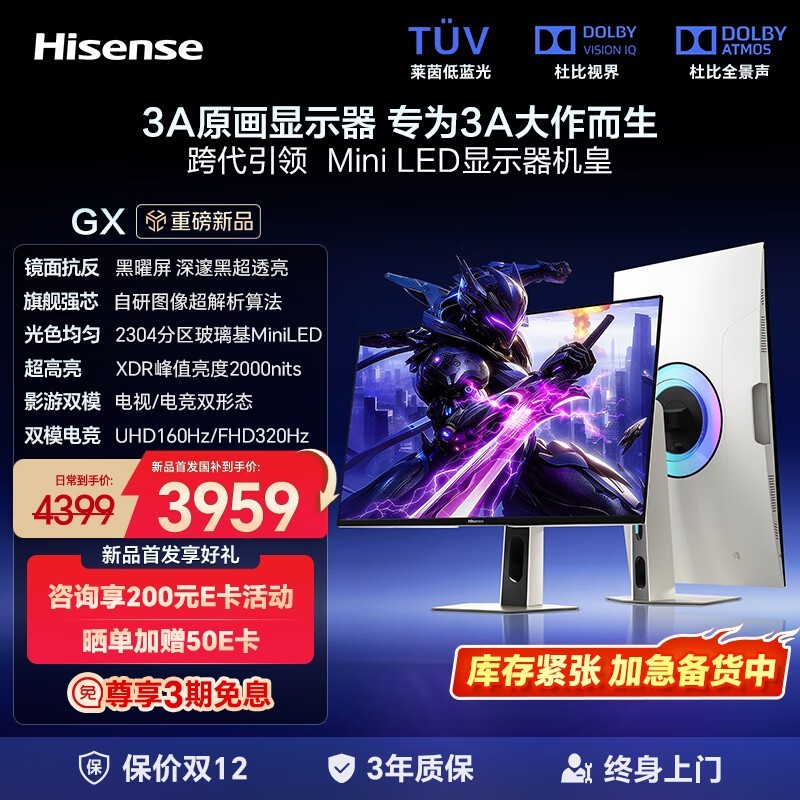 未经允许不得转载:紫竹林-程序员中文网 » 京东热卖Hisense GX电竞显示器,低至3689元
