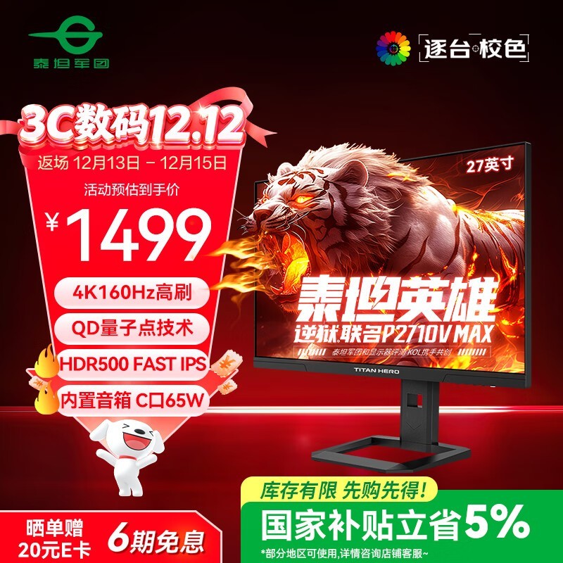 未经允许不得转载:紫竹林-程序员中文网 » 泰坦军团P2710V 4K显示器1329元