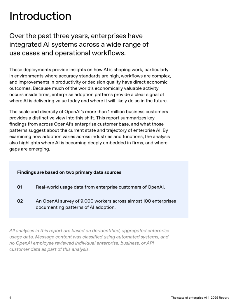 本报告基于对超过100万家企业客户的使用数据与近9,000名企业员工问卷,系统描摹了企业级AI的采纳速度、深度与经济影响。