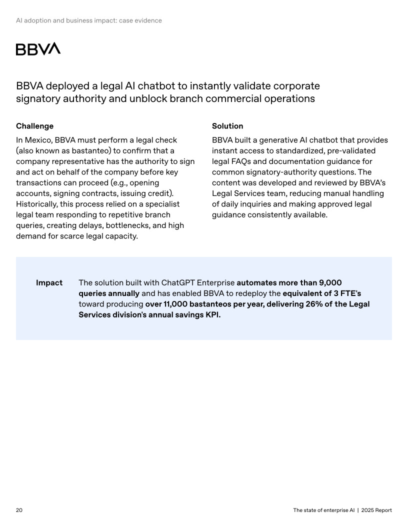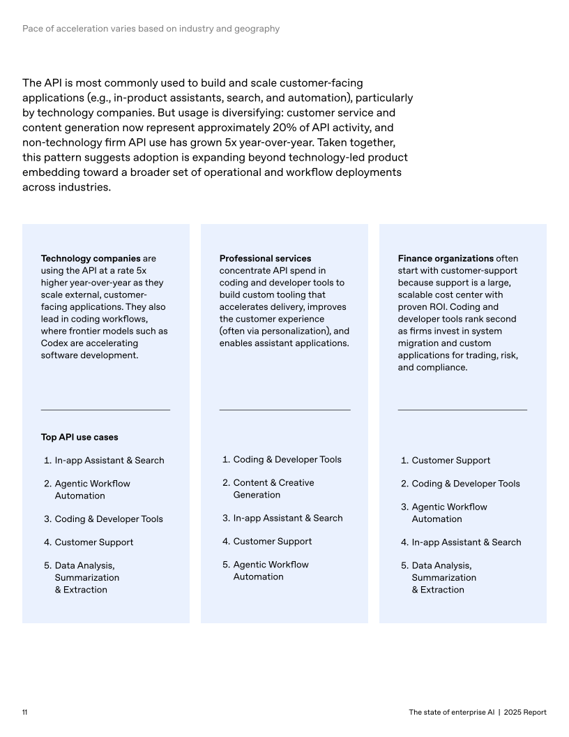 可配置的Custom GPT与Projects推动工作流常态化;周活跃用户同比增长约19倍,约20%的企业消息通过此类定制助手处理,表明组织在把AI嵌入日常操作。