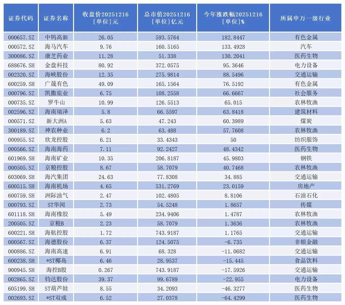 从二级市场表现看,截至12月16日收盘,今年以来,22家公司股价出现上涨。其中,中钨高新(000657.SZ)、海马汽车(000572.SZ)、康芝药业(300086.SZ)3家公司年内股价已经成功实现**。