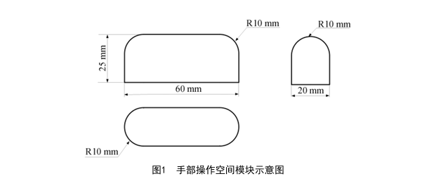 4.1.1.3 车门外把手在任意状态时,相对车身表面应具备操作机械释放功能的手部操作空间,该操作空间应能够放置如图 1 所示的模块