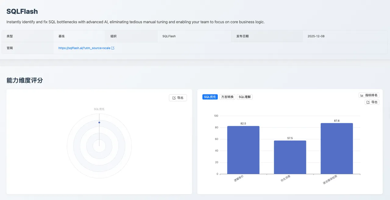 - 专业价值 :在 AI 生成代码领域,高标准的语法遵循是工程化部署的首要前提。此项数据有力佐证了 SQLFlash 具备 辅助开发人员进行代码规范性校验 的能力。