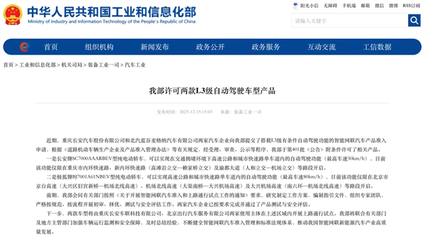 今年9月13日,工信部等八部门印发《汽车行业稳增长工作方案(2025-2026年)》,明确提出推进智能网联汽车准入和上路通行试点,并首次写入“有条件批准L3级车型生产准入” 。如今,长安和北汽两家车企则是从名单中率先通过遴选流程,跨入“产品准入”的门槛。