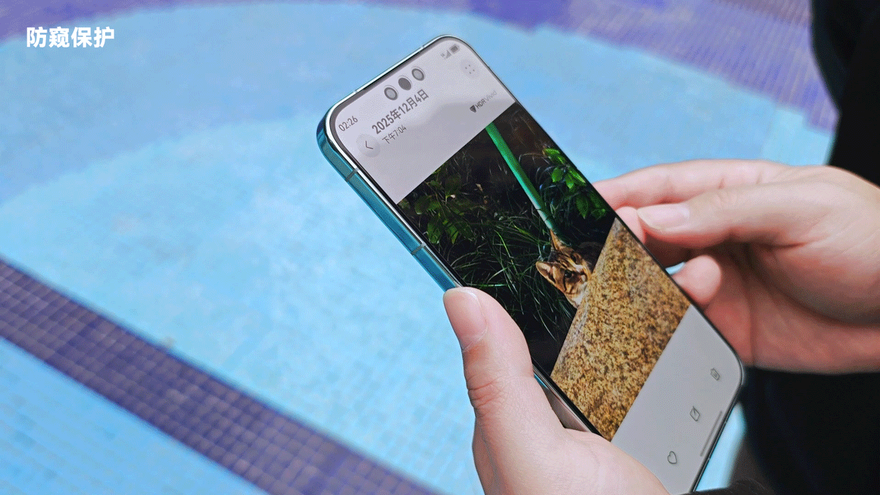 如果是在查看隐藏相册或者其他隐私应用时检测到旁人窥视,除了顶部跳出提示,还会进一步隐藏整个手机画面,主打一个守护到位。能有这个想法并成功落地,还得是看华为鸿蒙。