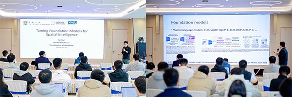 香港大学韩锴助理教授作了题为《Taming Foundation Models for Spatial Intelligence》的报告分享。他介绍了视觉语言模型和多模态大模型的基本概念,提出了通过最小文本等价描述解决视觉文本对齐问题。他指出多模态大模型缺乏3D感知能力,并提出了通过引入预训练的3D基础模型作为监督信号,显著提高了模型在3D场景理解任务上的性能。此外,他还讨论了前馈3D重建模型技术和高保真3D变形技术的关键因素,以及改进这些技术的有效方案。
