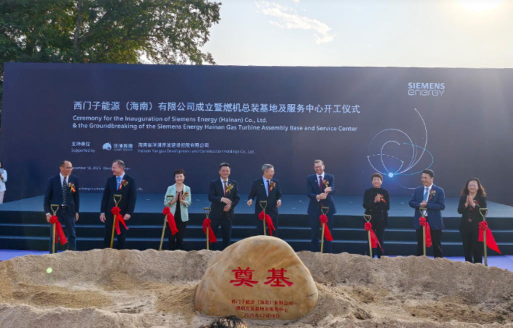 12月18日,海南自贸港正式启动全岛封关。当天下午,封关后首个制造业标志性外资项目——西门子能源(海南)有限公司在洋浦经济开发区成立,并同步开工建设燃机总装基地及服务中心 。作为西门子能源在中国建立的首个燃机总装及服务中心,该基地将构建覆盖总装、本地应用验证、备件保障与运维服务为一体的综合业务体系,进一步完善西门子能源全球燃气轮机组装与服务网络,满足中国及海外市场对燃气发电装备不断增长的需求。