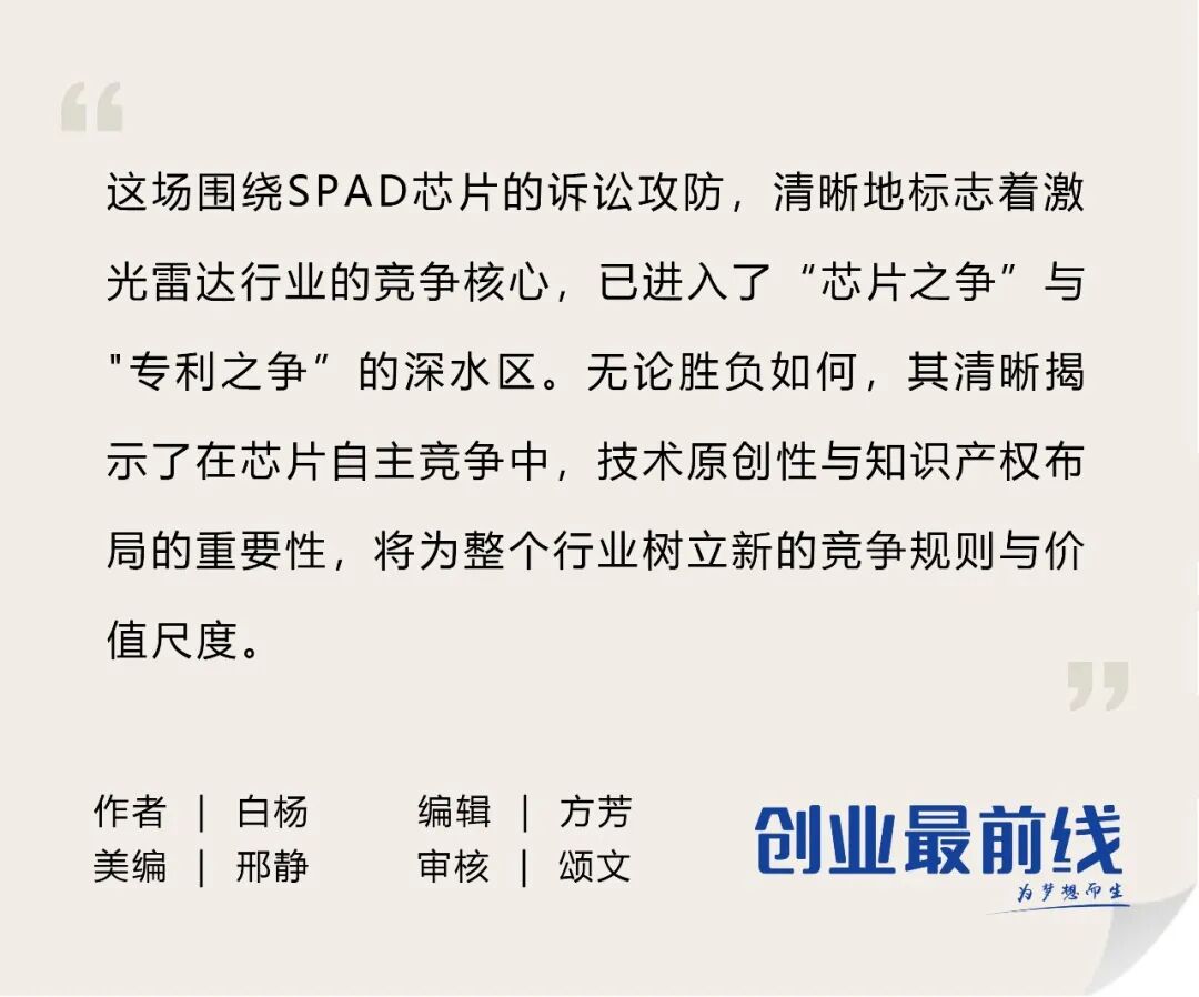 这场围绕SPAD芯片的诉讼攻防,清晰地标志着激光雷达行业的竞争核心,已进入了“芯片之争”与“专利之争”的深水区。无论胜负如何,其清晰揭示了在芯片自主竞争中,技术原创性与知识产权布局的重要性,将为整个行业树立新的竞争规则与价值尺度。