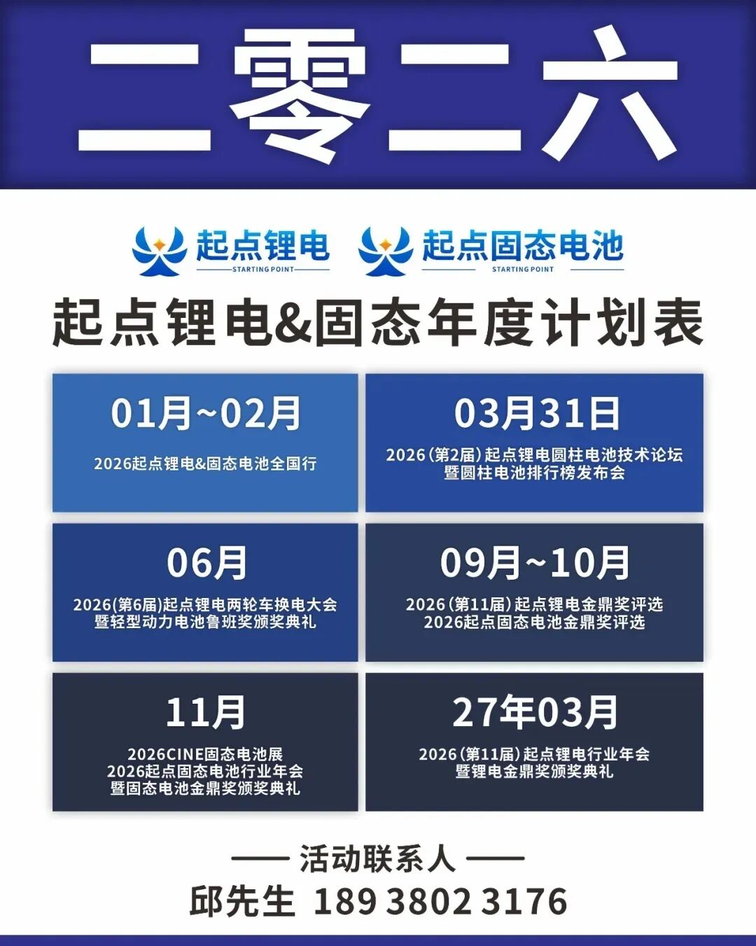 新周期  新技术  新生态! 12 18 日,由起点锂电、起点储能、起点研究院 SPIR 主办的 2025 (第十届)起点锂电行业年会暨锂电金鼎奖颁奖典礼 & 起点研究十周年庆典、 2025 起点用户侧储能及电池技术论坛 在深圳市维纳斯皇家酒店正式召开!现场 800+ 嘉宾参会齐聚,深度探讨锂电池、材料、设备等核心议题,前瞻解析技术突破、破题安全挑战与价值链重构。
