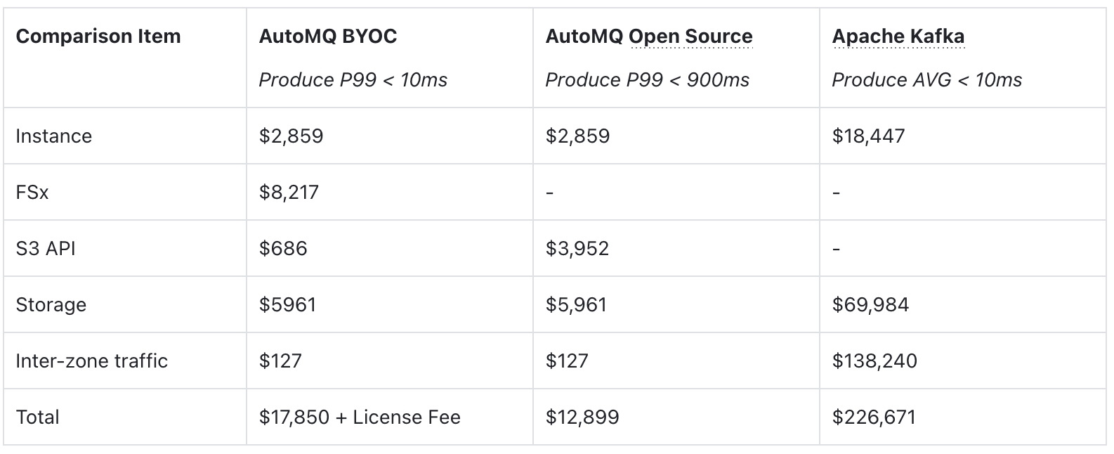 The conclusion is clear: you no longer need to pay a premium for high performance. Compared to traditional architectures, AutoMQ achieves a TCO reduction of over 10x, all while delivering the same <10ms latency experience.