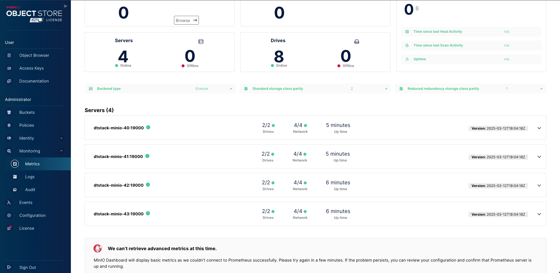 在minio也可以看到当前的server有四个节点