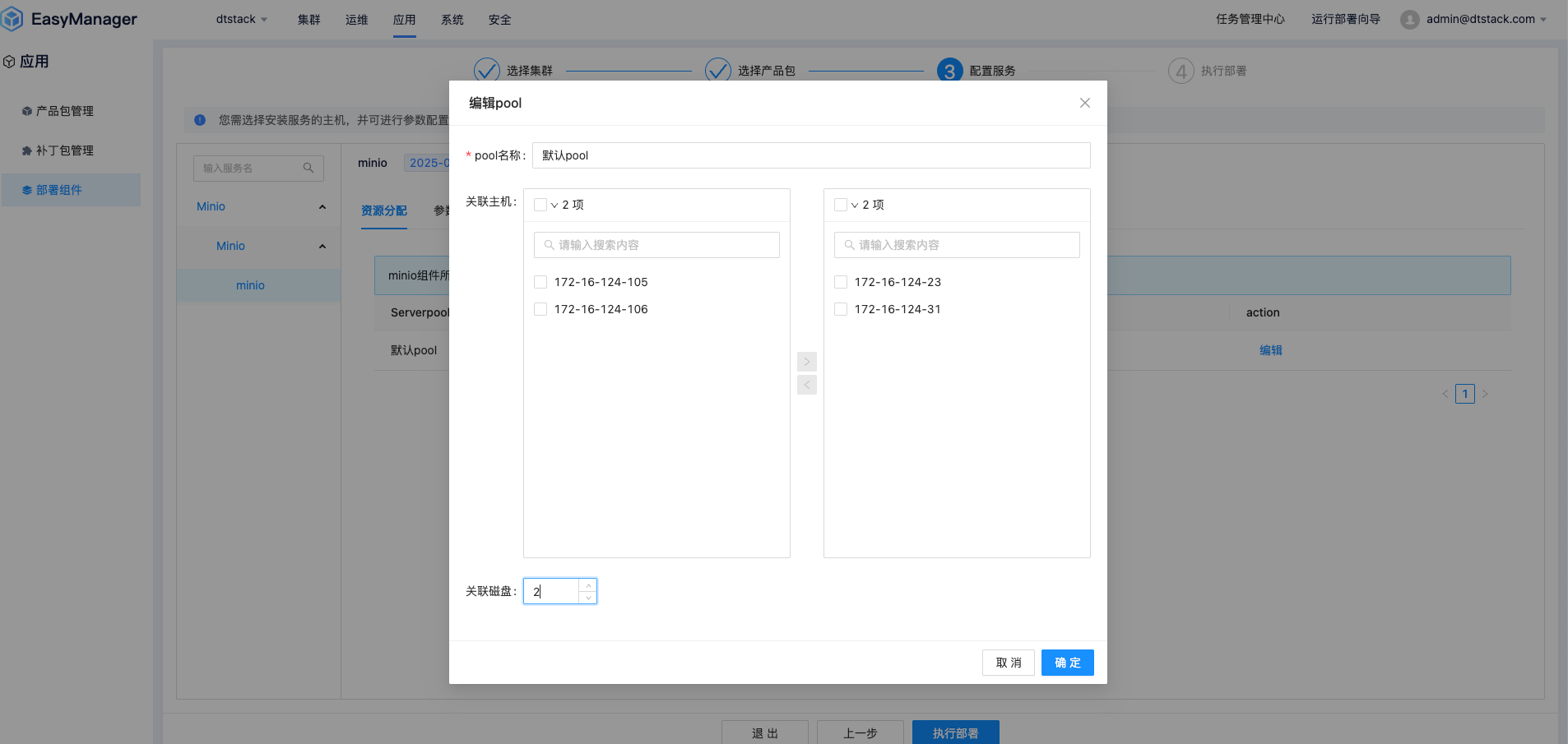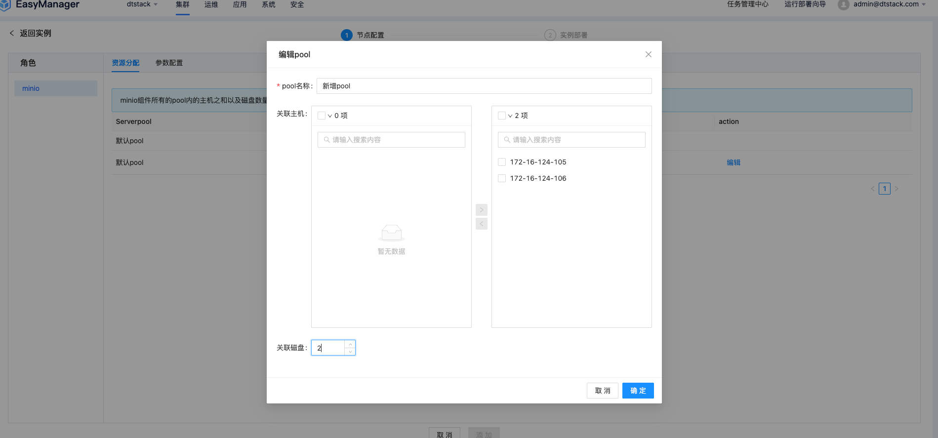 在EMR集群部署页面中,用户首先需要进入“节点池”配置模块。在此,您可以创建或选择一个特定的节点池,并将Minio服务精准地关联至池内目标计算节点。关键步骤在于对存储资源的规划:您需要明确指定为Minio服务挂载的磁盘数量,系统默认为每个选中的节点挂载一定数量的磁盘。
