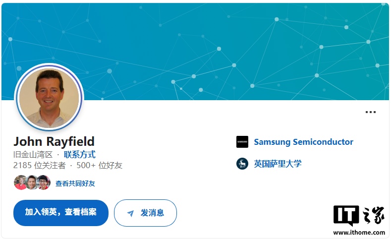 雷菲尔德领英履历显示,他已于今年 11 月起开始担任三星电子 SARC・ACL 的 SVP 职务。SVP 为负责特定事业部或研究机构整体运作的高级管理岗位。