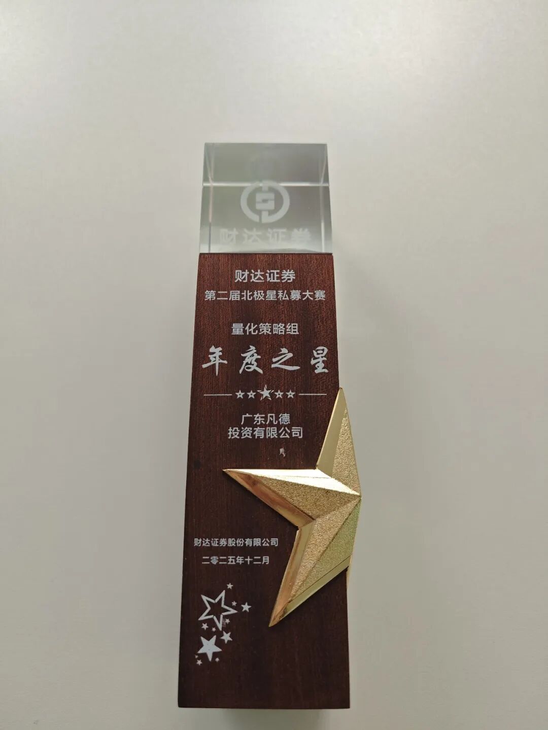 喜讯 | 我司荣获财达证券第二届北极星私募大赛“量化策略组年度之星”
