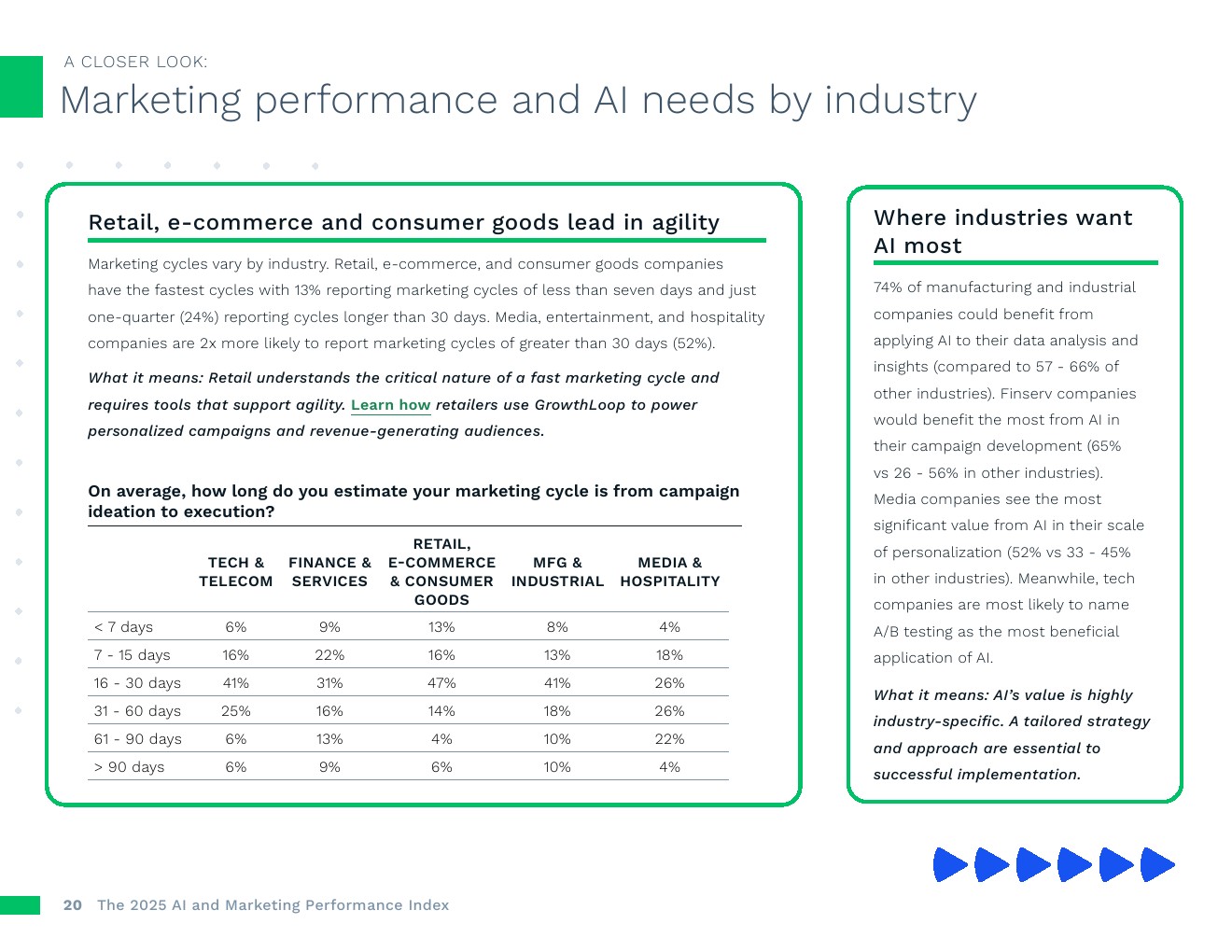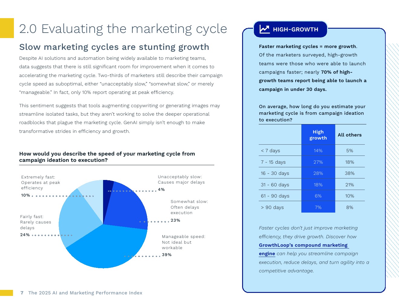 快速增长源于快速循环。高效的营销周期与显著的收入增长密切相关。去年实现显著收入增长的企业中,拥有“相当快”或“极快”营销周期的可能性(54%)高于去年增长较少的企业(28%)。