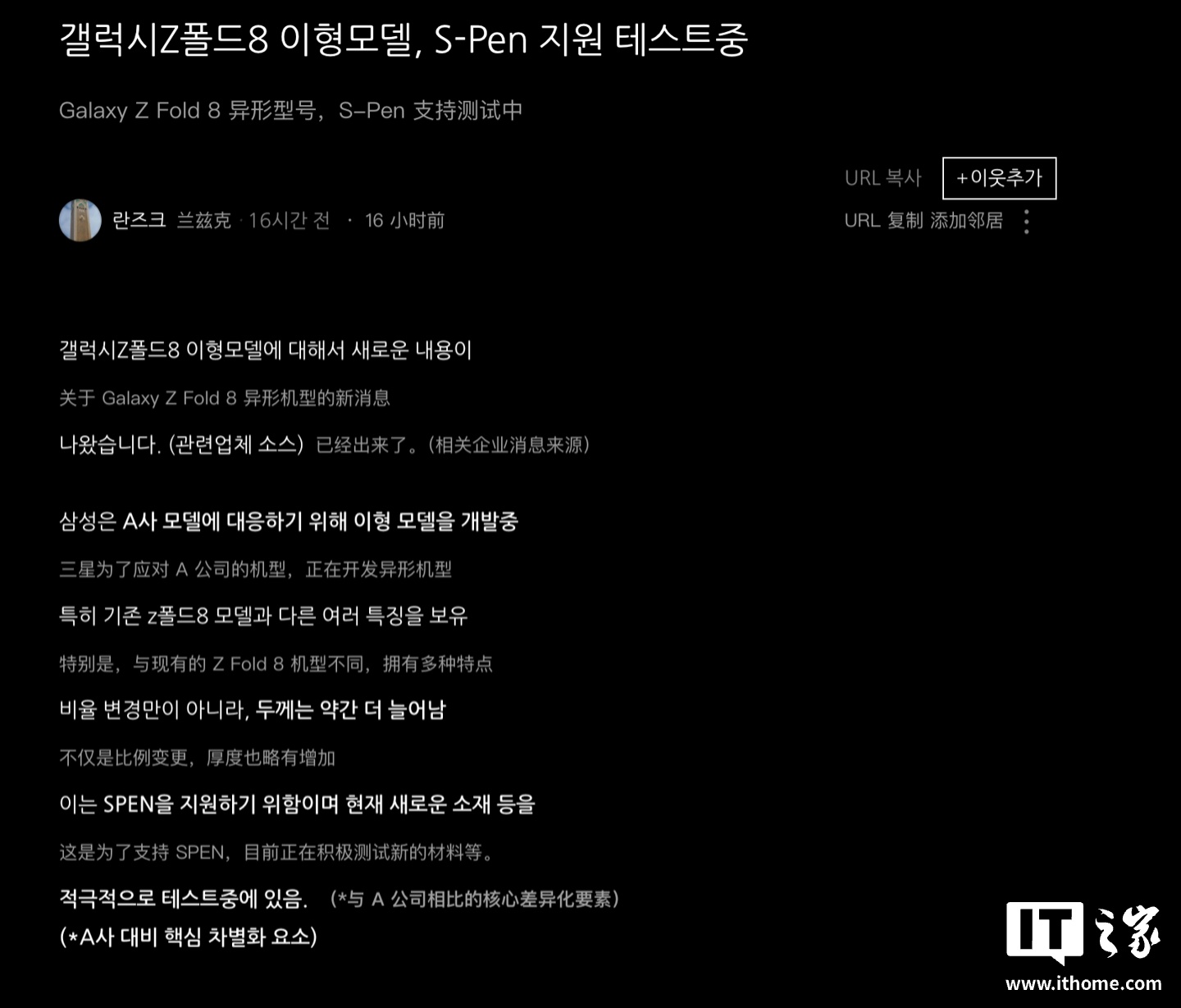 IT之家 12 月 24 日消息,近期有消息称,在三星下一代折叠屏阵容中可能会新增一款名为 Wide Fold(IT之家注:直译为“宽折叠”)的机型。爆料人 yeux1122 今日透露,该机有望让手写笔重新回归。为此即将付出的代价是机身可能稍微变厚。