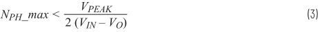 考虑一个12V转1.8V应用中的激进地负载瞬态,所有相位中的所有高端FET都导通以使电感电流尽可能快速地上升,因此(VIN – VO) = 10.2V电压同时应用于所有主绕组,如图2所示。实际波形将取决于电路参数,但在最坏情况下,1:1变压器会在其副边生成10.2V电压,因此副边的电压脉冲将是(VIN – VO) × NPH。这显然是一个安全担忧。图2对于150nH值的TLVR给出了实际值,主绕组和辅助绕组之间的小型漏电感测量值为5nH。图中还显示了LC值为160nH。此LS值在NPH~6的典型范围内,但可以调整,特别是针对不同数量的关联相位。