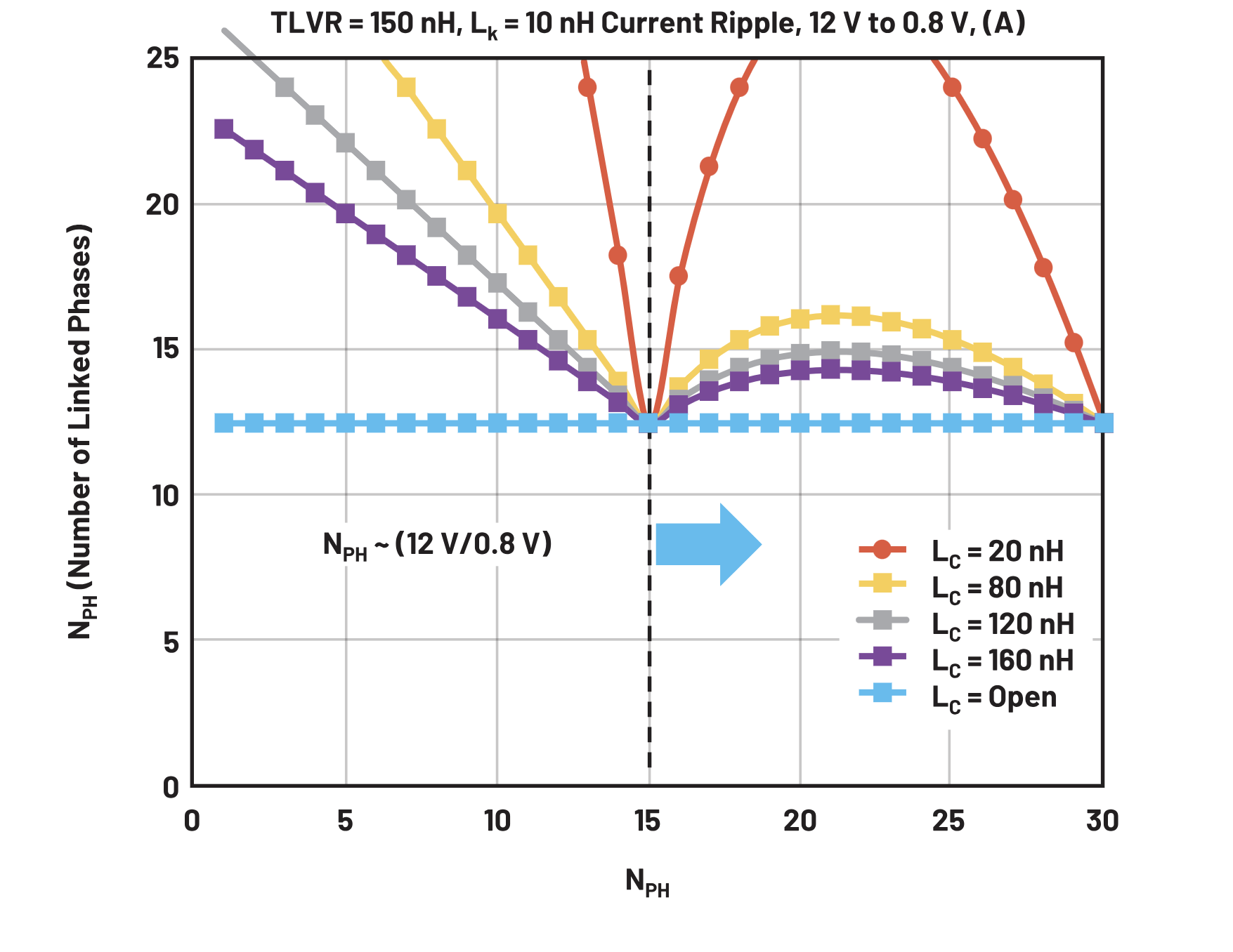 多相降压调节器使用来自的TLVR原理图,如图1所示。虽然主电感绕组仍然连接在相位和VO的开关节点之间,但添加的辅助绕组彼此串联电连接,并连接到调谐电感LC。若移除LC,电路就又回到降压转换器中只有分立(未耦合)电感的情况。若LC输出短路,则各相之间的关联度最强,瞬变性能也最快,但这也会影响电流波形和电流纹波的一般幅度。实际上,LC通常是这两种极端情况的折衷选择。