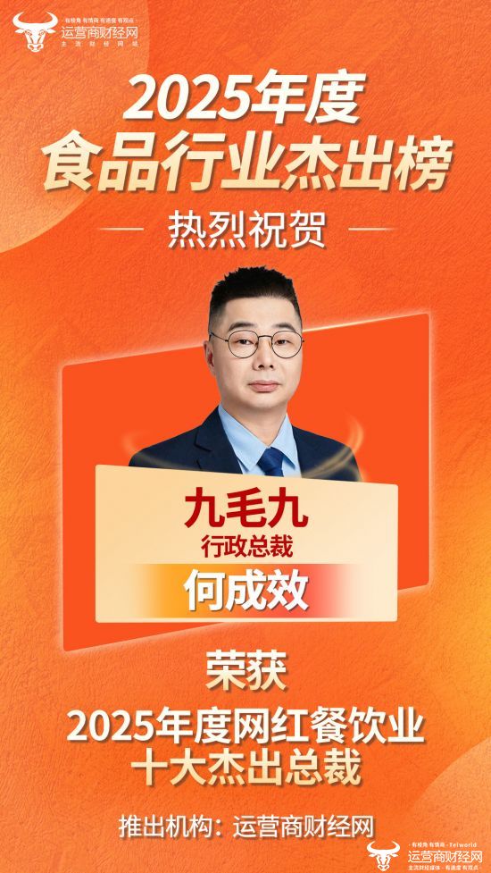 近日,运营商财经网正式推出“2025年度网红餐饮业十大杰出总裁”榜单,九毛九行政总裁何成效榜上有名,可喜可贺!