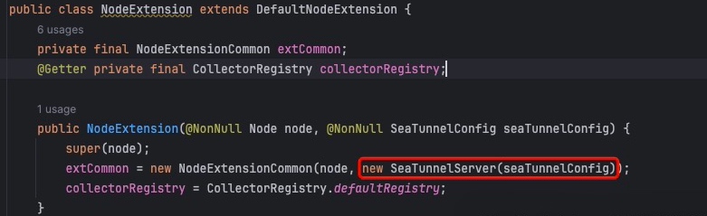 其中,最重要的就是这句代码中的new SeaTunnelNodeContext(seaTunnelConfig),这里会返回一个SeaTunnelNodeContext类,这个类是继承自Hazelcast这个组件的DefaultNodeContext类。在Hazelcast启动的过程中,会去调用DefaultNodeContext类的实现类的createNodeExtension()方法,在这里其实也就是SeaTunnelNodeContext类的createNodeExtension()方法。这里不具体展开讲解Hazelcast类,大家可以去查一下其他Hazelcast资料。