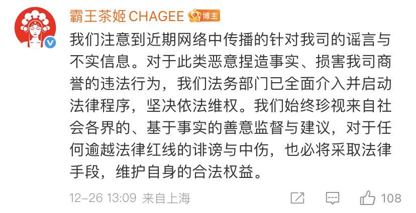 “我们注意到近期网络中传播的针对我司的谣言与不实信息。对于此类恶意捏造事实、损害我司商誉的违法行为,我们法务部门已全面介入并启动法律程序,坚决依法维权。我们始终珍视来自社会各界的、基于事实的善意监督与建议,对于任何逾越法律红线的诽谤与中伤,也必将采取法律手段,维护自身的合法权益。