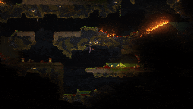高自由度的《Noita》以技术著称,游戏只设定下物质的基本规则,如水遇火变蒸汽,酸腐蚀木头,剩余的一切交给玩家自行探索,从中诞生出了各种超乎预想的玩法和战术。