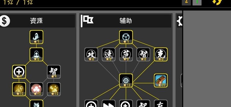 这是六资星科技的加点思路。由于我平时较为佛系,未频繁刷星,目前仅能如此分配。若有额外星数,建议优先点亮属性克制,配合下方攻击增益,最后点满资源中的幸运一击。选择小偷科技是因为左侧攻击收益极高,即便放弃200金币利息也值得。若星数充足,可将资科技全部点满,进一步提升整体实力。