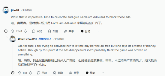 有趣的是,孙子曾多次提出要帮奶奶买个“去广告版”,但都被奶奶严词拒绝了。奶奶觉得花那钱纯属浪费。孙子调侃道:“我觉得如果广告真的消失了,她可能反而会觉得这游戏坏了。”