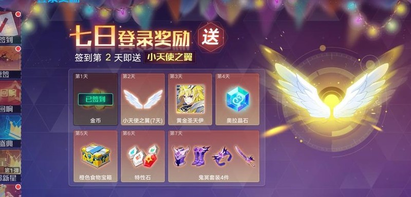 回到主界面时弹出签到活动窗口,第三天可领取王系黄金圣天伊——这是本宝宝的另一种进化形态(并非皮肤,而是更强力的黄金版本~)。此外还有时装、奥拉晶石、特性石奖励,第七天更能获得整套强力装备!
