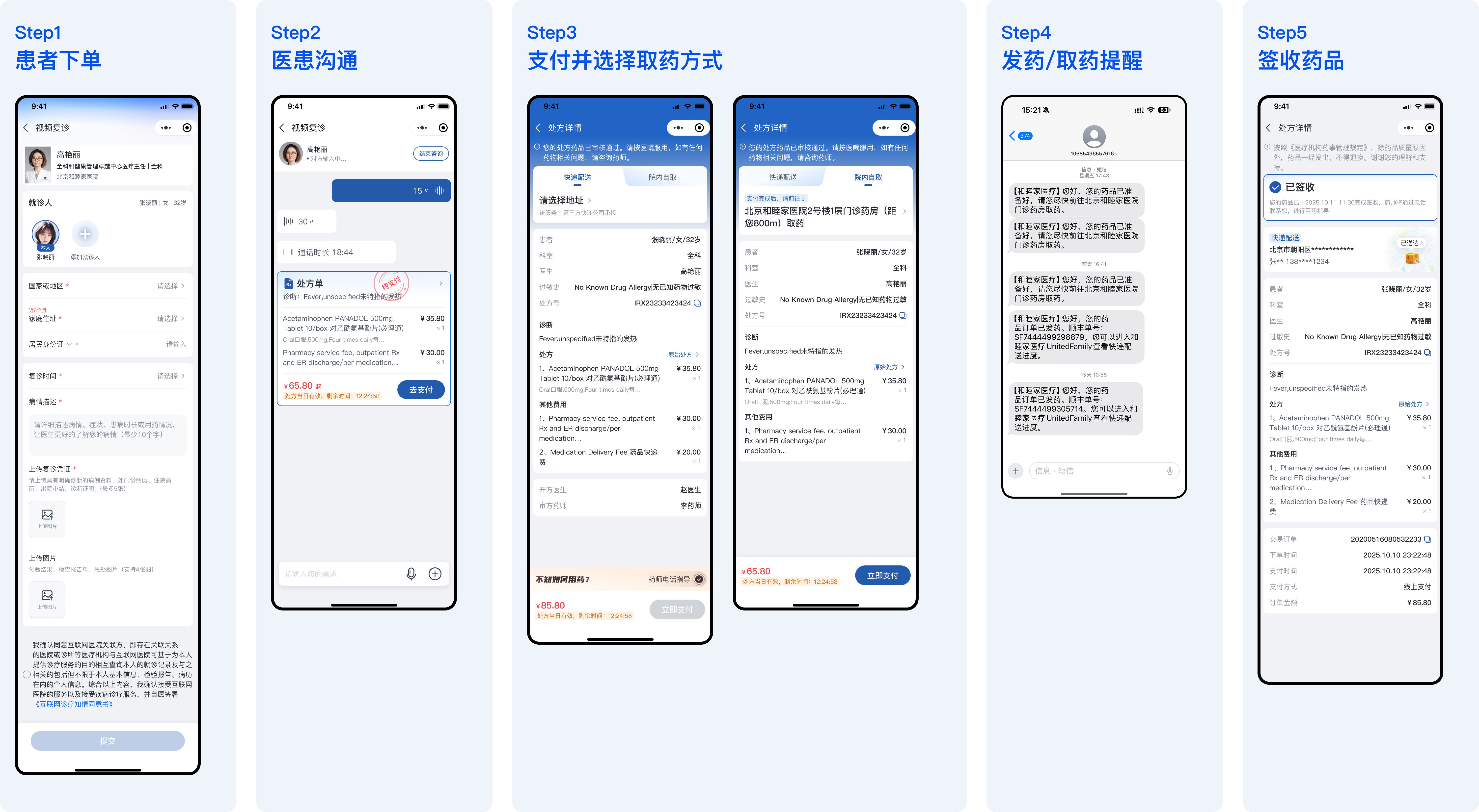 ·复诊开药全流程线上化:从 “提交申请 – 医患沟通 – 支付 – 药品配送” 实现全流程线上闭环,符合医疗监管要求的同时,让患者足不出户即可完成复诊续方、送药到家。