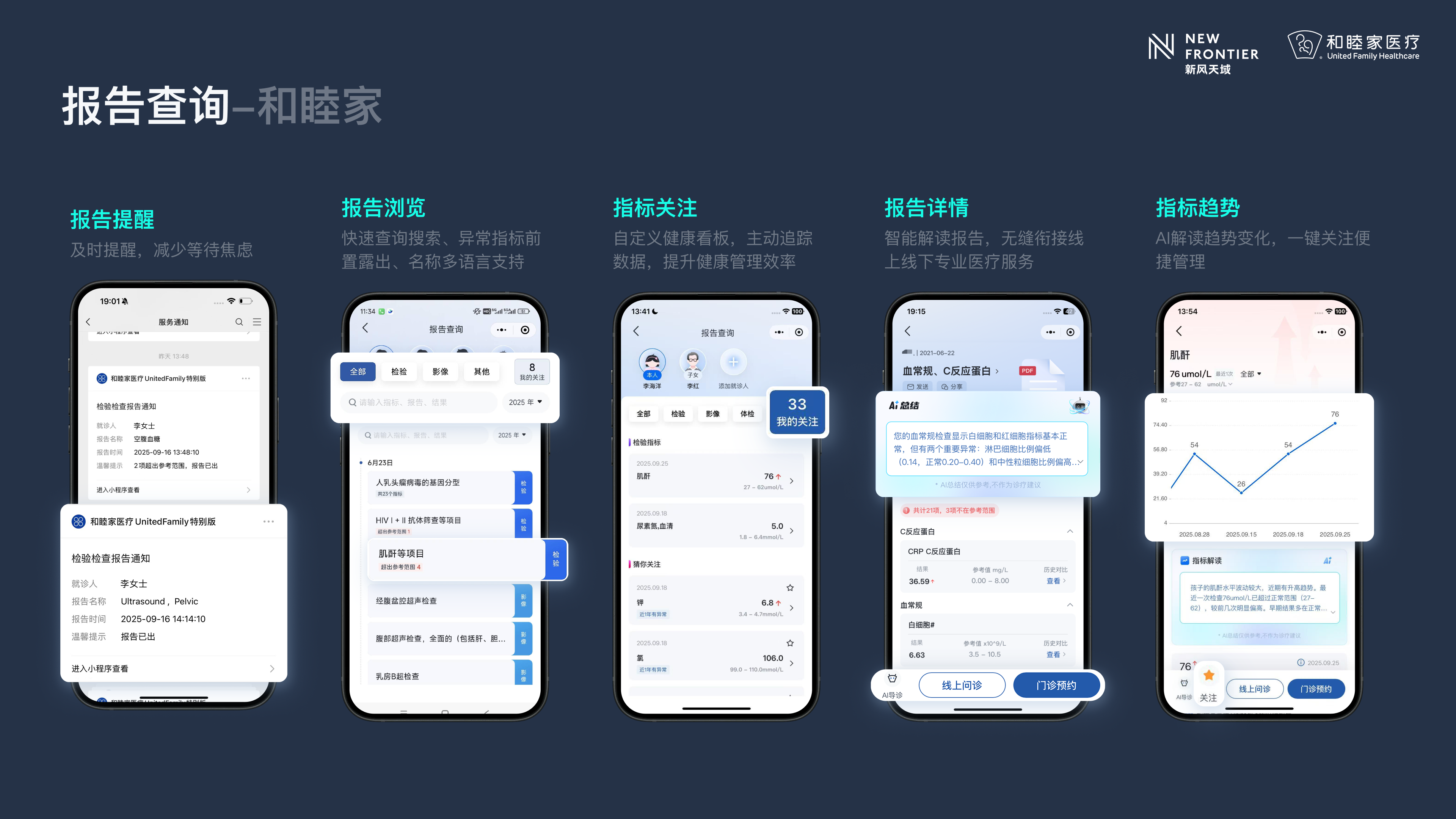·体验优化:AI搜索和AI预问诊功能覆盖约半数首诊患者,首诊效率、诊疗深度及患者满意度(NPS)均显著提升,同时,2025年累计为用户提供近150万次报告查询、200万次就诊记录浏览,这背后是AI提供的个性化解读、趋势分析与可行动建议,也是和睦家一直践行的 “让看病这件事,再暖一点、再顺一点”。