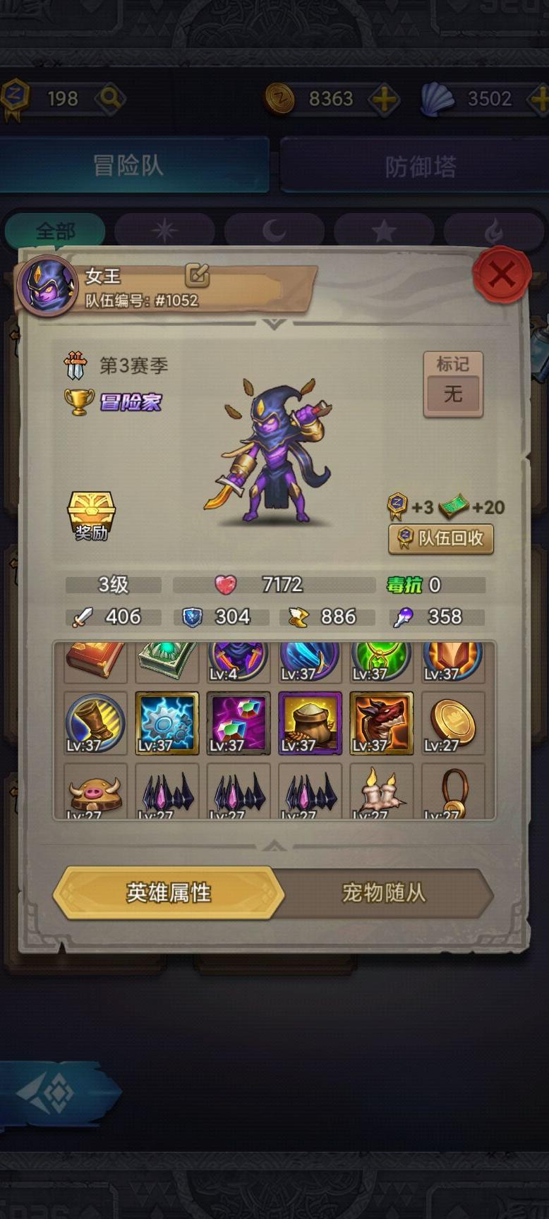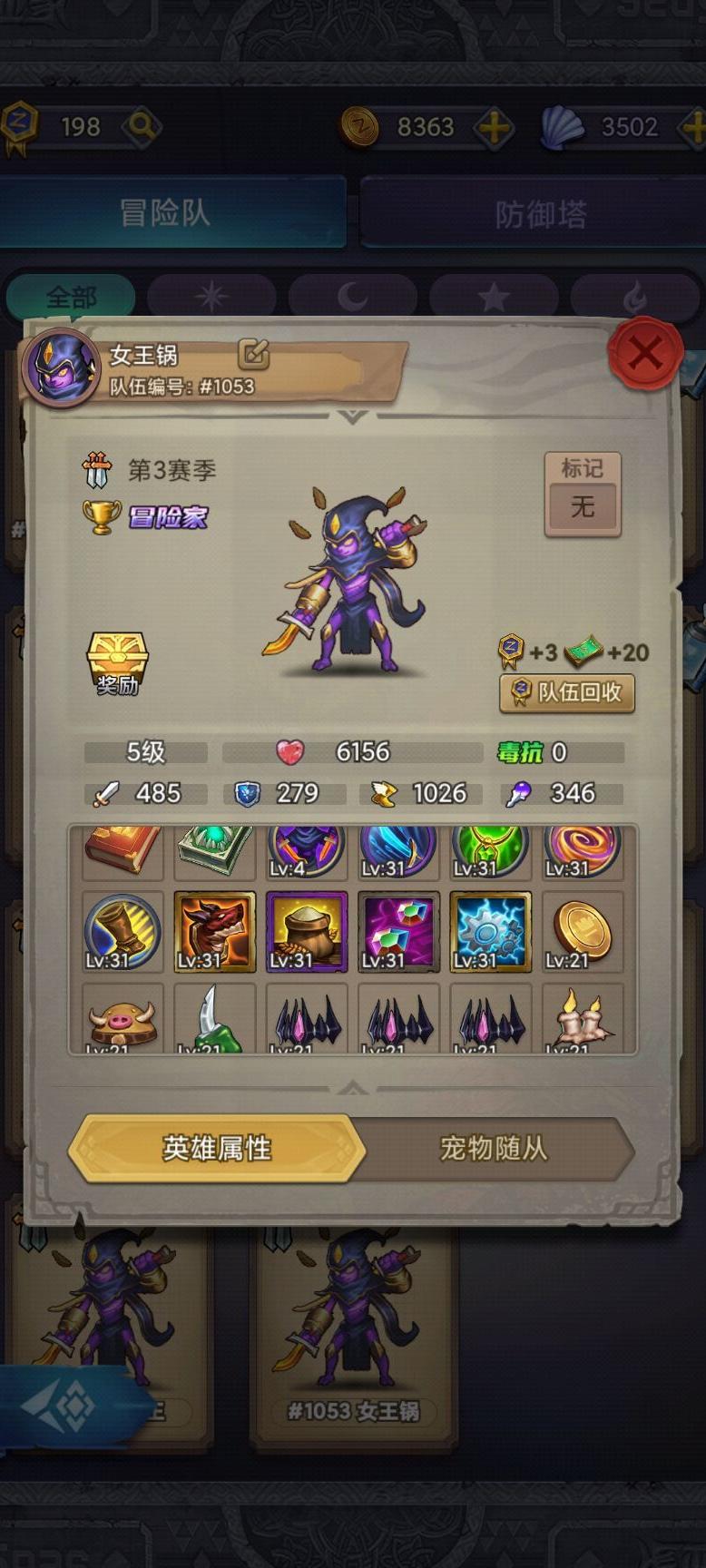 技能搭配:水晶、科技发明、龙头、饼干,全力叠加女王属性。