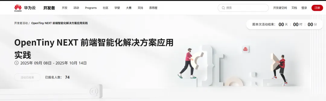 联合开发者联盟上线OpenTiny产品体验官活动,让线上开发者体验项目当前的智能化能力。共引导74位开发者报名参与