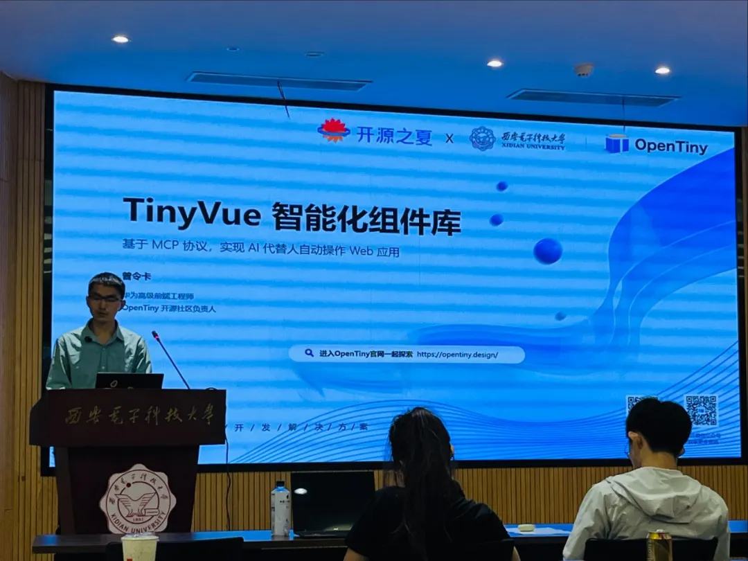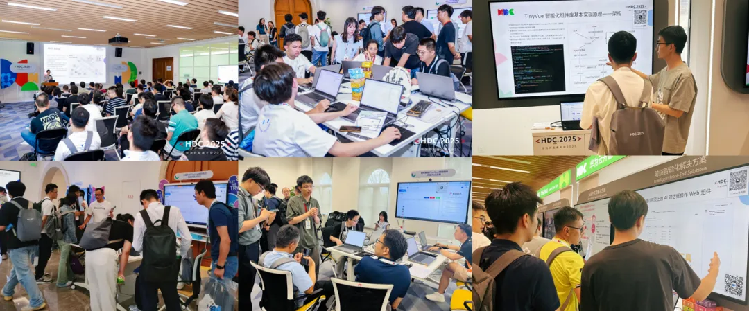 其中HDC 2025作为年度重点活动,OpenTiny围绕前端智能化解决方案设置四大核心环节:专题论坛中,华为云高级前端开发工程师曾令卡发表《基于MCP协议:快速解锁AI操作Web组件》主题分享,深度解析TinyVue智能组件库的实践逻辑;展览展示区通过互动演示吸引300+名开发者、研究人员及企业代表交流;产品体验官活动让开发者亲身感受AI对话框与Web组件的语音/文字交互能力;两场CodeLabs训练营分别聚焦TinyVue智能组件开发与TinyEngine AI搭建能力,助力开发者快速上手实操。