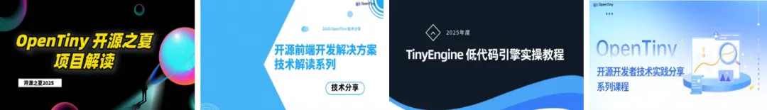 持续推进体系化建设,打造系列技术课程。当前已完成《开发者技术实战课程》,《TinyEngine低代码引擎实战教程》、《OpenTiny前端解决方案技术解读》、《OpenTiny开源之夏项目解读》等技术课程,推出90+篇技术文章,包含《TinyVue智能组件库:基于MCP协议实现AI代替人操作Web组件》、《TinyVue表格重构逐帧拆解,虚拟滚动体验大提升!》、《产品经理要”通过大小、时间范围筛选”搜索?我 15 分钟用 SearchBox 交差!》等等。并通过运作12个社媒渠道,整体传播量达96.7W+,并荣获2025年开源中国共创社区荣誉。
